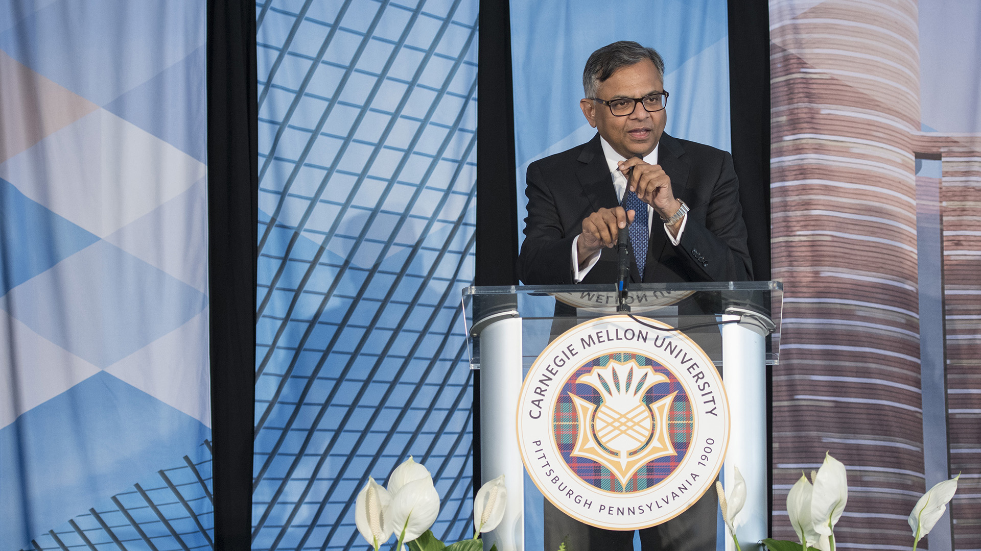 N. Chandrasekaran, chairman of Tata Sons, spoke of TCS’s beginnings in Pittsburgh.